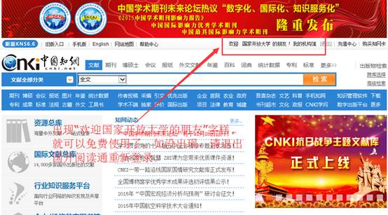 4.打开知网主页后,如果页面右上角出现“欢迎国家开放大学的朋友!”字样,就可以正常使用中国知网了;如果没出现,退出国开阅读通客户端重新登录。