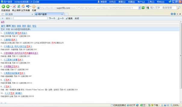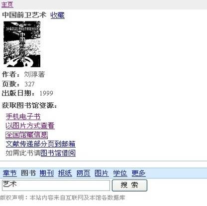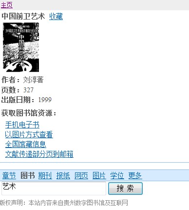 显示检索结果如图5,以第6条<<中国前卫艺术>>为例,点击图书链接