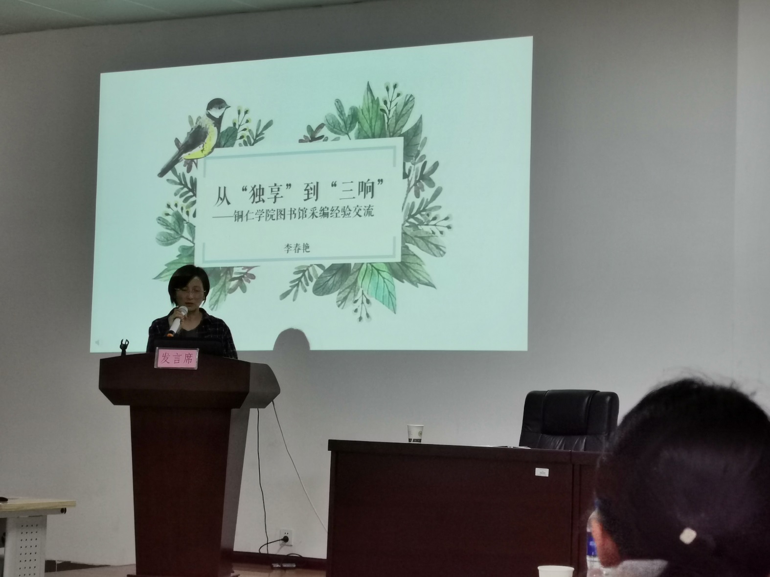 会议第二项议题为贵州高校图书馆采访编目工作交流会,由贵州高等学校图书馆工作指导委员会秘书长张伟云主持,邀请了来自五所大学的馆员进行馆情介绍和经验分享,分别是贵州财经大学图书馆资源建设部张达娜老师《文献资源采访工作交流》、铜仁学院图书馆李春艳老师《从“独享”到“三响”》、黔南师范学院图书馆采编部主任《图书馆采编工作简介》、贵州商学院图书馆傅师英《采编工作汇报》、贵州医科大学图书馆汪其英《贵州医科大学馆藏采访报告》。