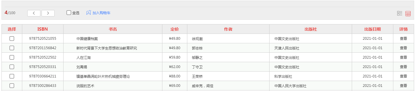 1.1、平台可按图书的出版时间、定价排序。也可按价格区间、出版时间段、重点图书【即图书馆关注的重点出版社】进行筛选。