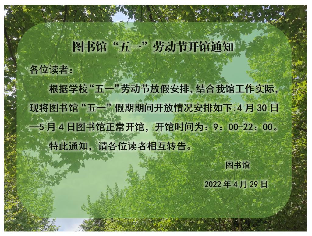 图书馆“五一”劳动节开馆通知