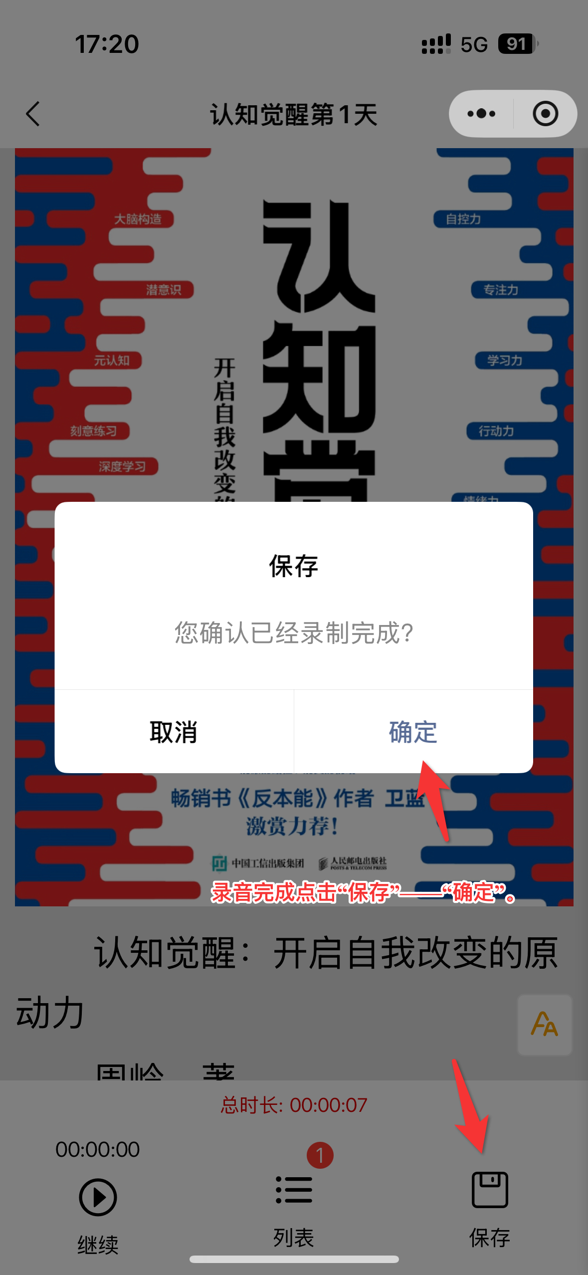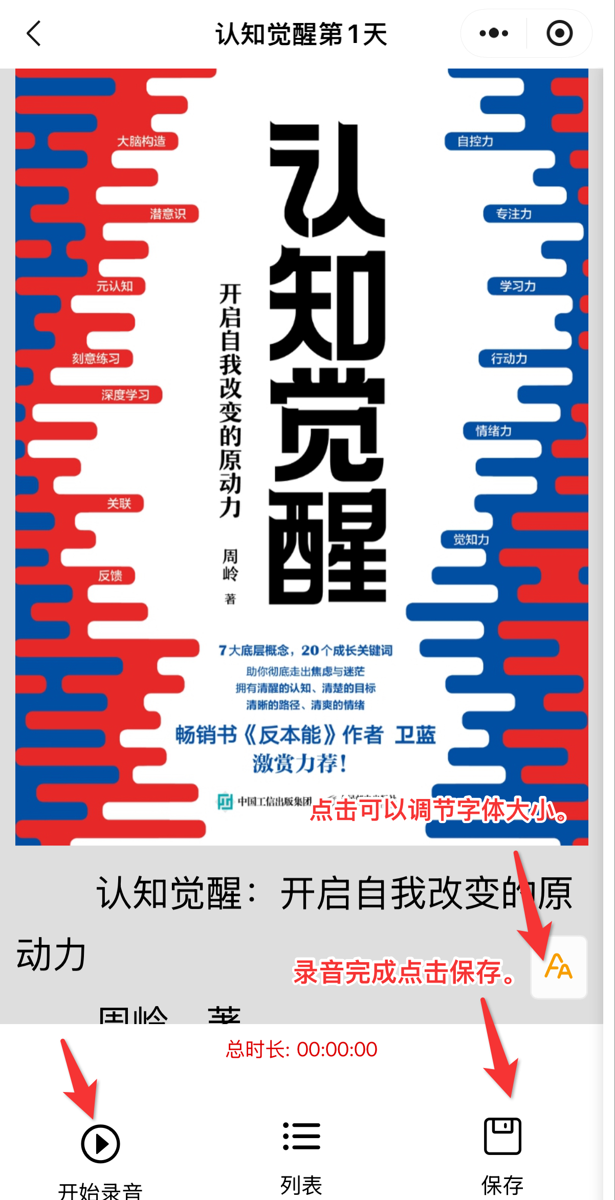线上共读《认知觉醒》,通过完成录⾳朗读、分享“⼼得感悟”,邀请好友共读等任务获得积分。