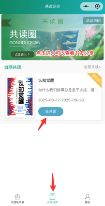 (2)共读活动也可以邀请朋友参加,如下图所⽰点击即可邀请。
