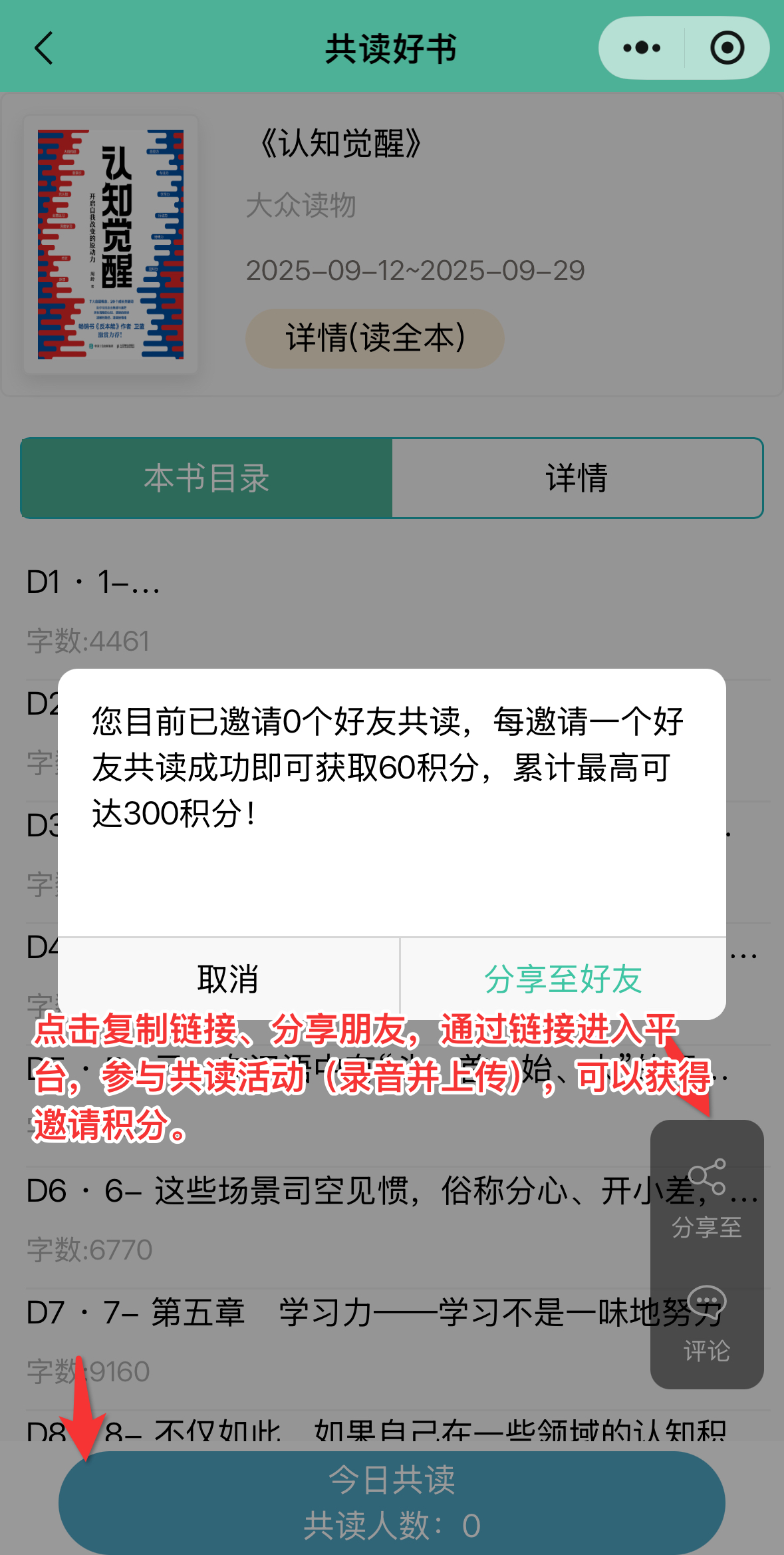 (5)邀请朋友参与共读,可另外获得60积分(最⾼可获得300积分)