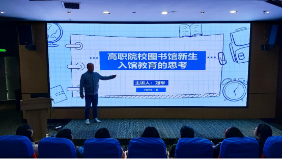 2023 年 4 月 18 日,在图书馆二楼影音厅举办了一场以“面向社区教育数字资源阅读推广探究”为主题的培训。本次培训面向图书馆全体馆员,由刘军担任主讲人。