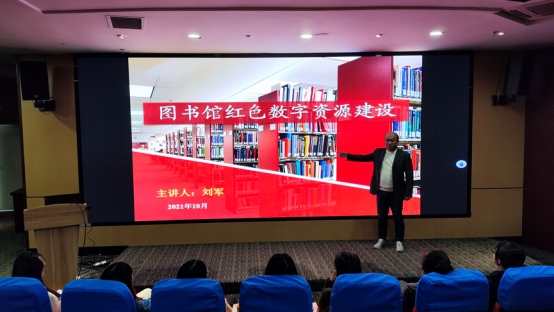 2021年10月15日,图书馆影音厅开展了一场意义深远的《图书馆红色数字资源建设》培训。此次培训由刘军老师主讲,图书馆众多工作人员参与其中,共同深入学习探讨图书馆红色数字资源建设相关重要知识与理念。