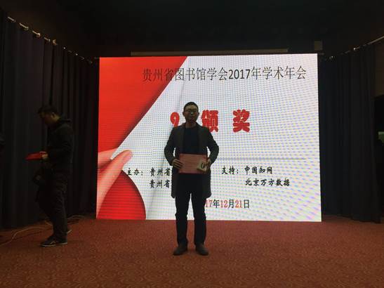 年会还为论文获奖作者及优秀组织单位颁奖,我馆馆员李光华论文《虚拟读者证在贵州图书馆的应用:机遇、挑战及对策》荣获年会征文三等奖。