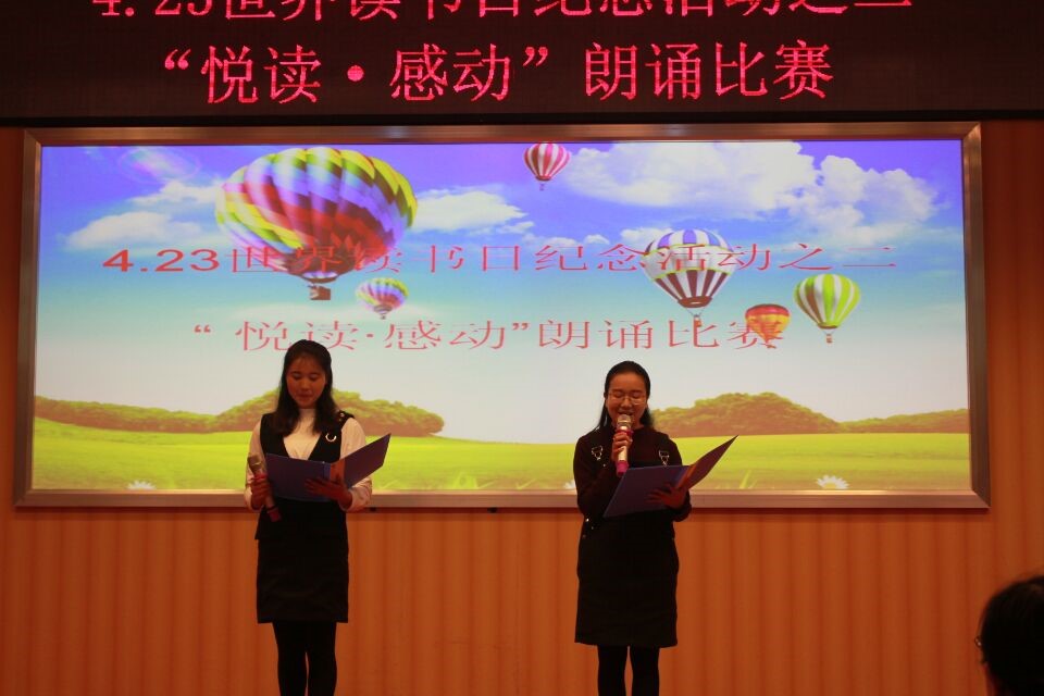 为纪念第二十二个“世界读书日”,营造富有激情、富有青春气息的校园文化氛围,提高学生的文化素质和文化自信,4月24日下午,图书馆、团委在学术报告厅举办以“悦读•感动”为主题朗诵比赛。
