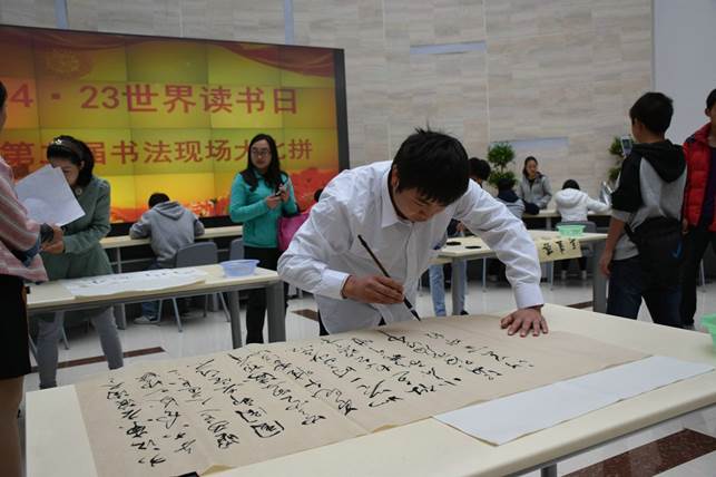 4月23日中午,贵州广播电视大学图书馆第二届“书法现场大比拼”活动在一楼大厅拉开序幕。赛场上,选手们纷纷拿出看家本领展示自己的实力,有的豪放有力、有的婉约细腻、有的如行云流水……比赛结束后,图书馆特邀书法专家对比赛作品进行点评,并评出一二三等奖。