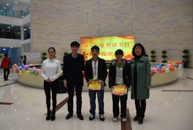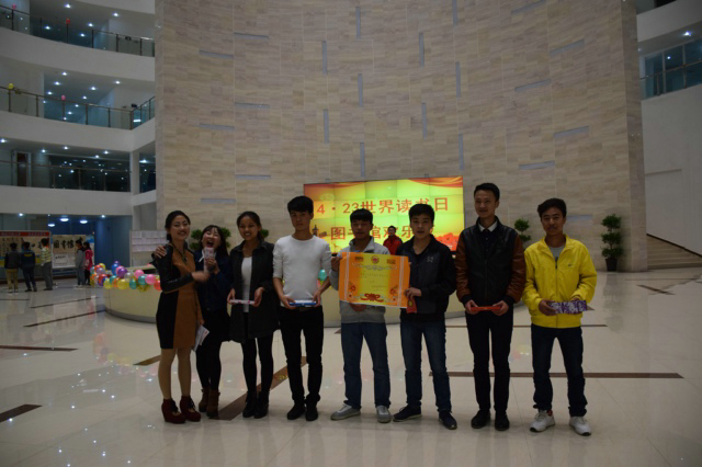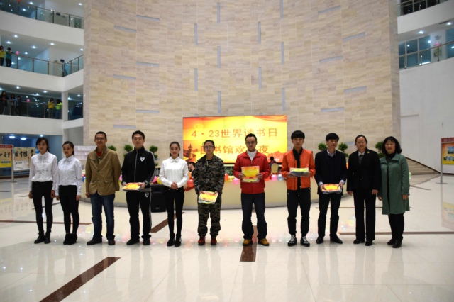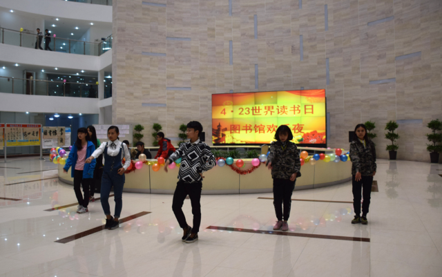 4月23日晚7点,图书馆一楼大厅灯火辉煌,场面热烈,副校长李勤,图书馆馆长郭云莹、团委王永峰等老师参加了“读书节欢乐夜”的颁奖典礼。典礼上,大家共同分享了在图书馆系列活动中获奖者的成功与喜悦,欣赏了由街舞社、中职校、动漫社带来的精彩节目,目睹了书海寻宝、猜谜语、背诵古诗跳绳紧张而激烈的角逐。