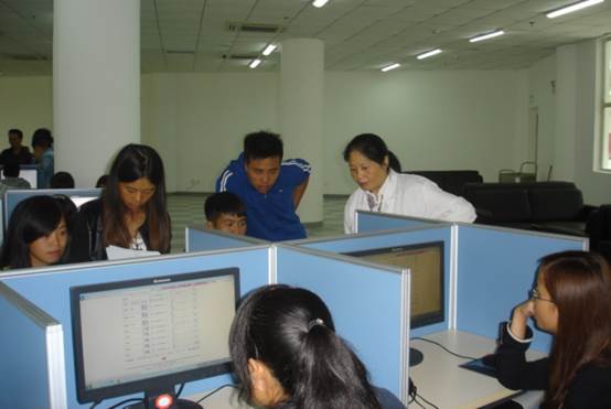 ▼参观图书馆电子阅览室,并体验方便快捷的馆藏资源信息查询