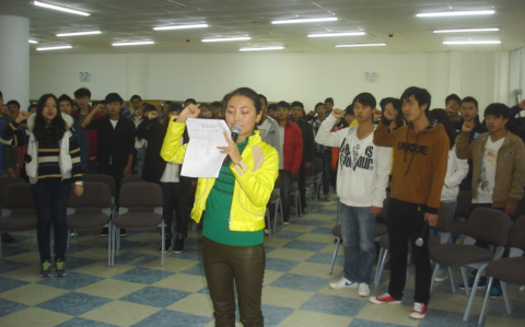 在温馨的氛围里,同学们合唱《生日歌》为到场的9、10、11月份出生的同学集体过生日。