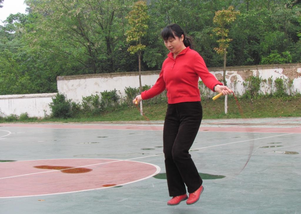 ▲图书馆流通部主任韩建平参加教工乙组跳绳比赛获一等奖