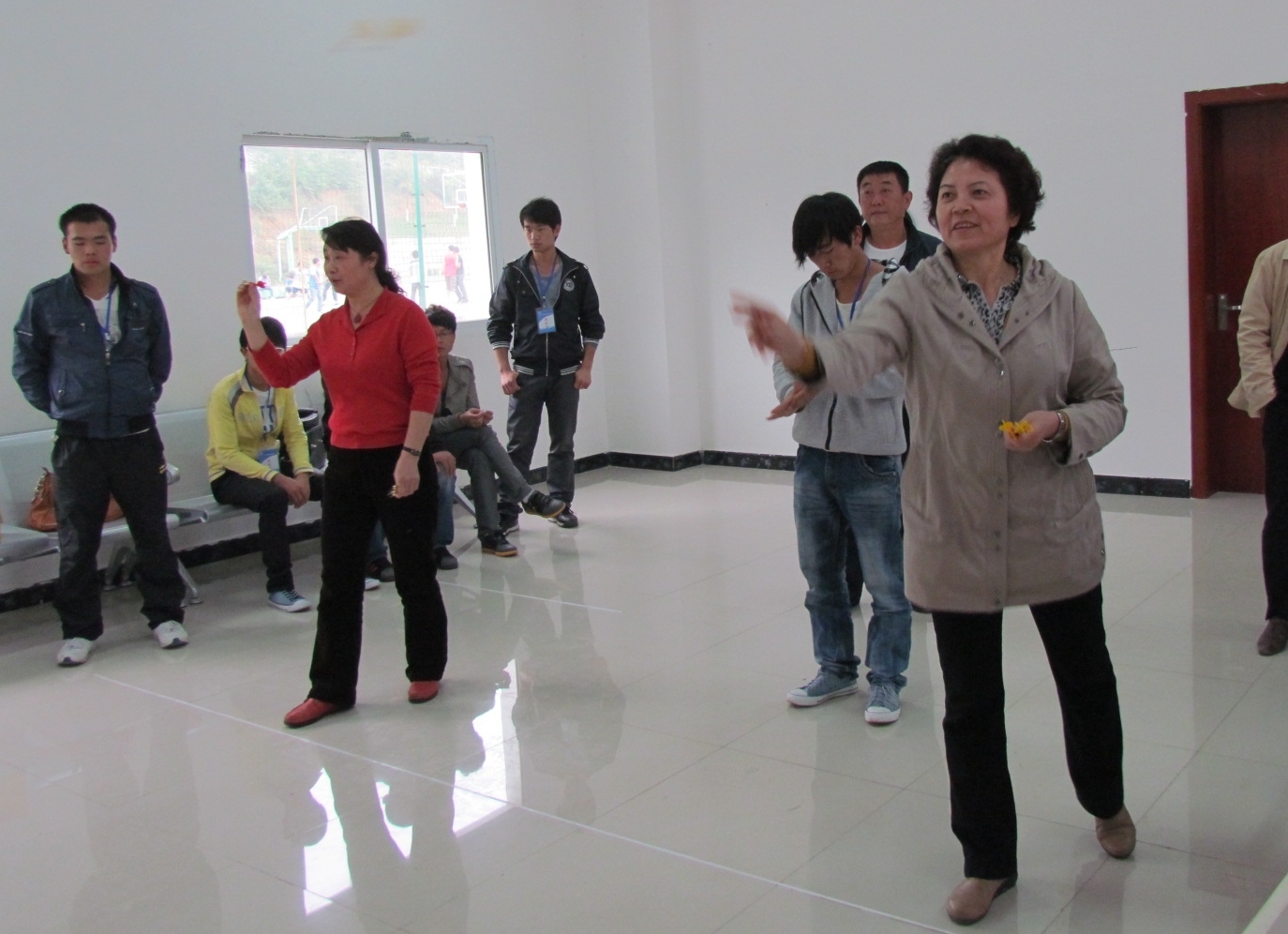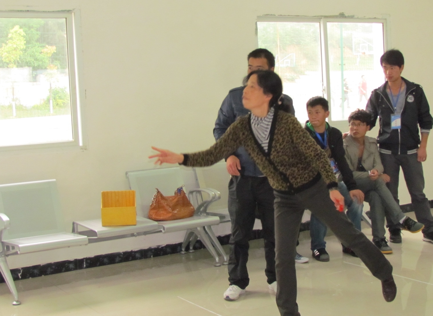 ▲图书馆采编部主任谢颖参加教工乙组投飞镖比赛
