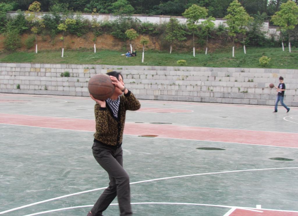 ▲图书馆采编部主任谢颖参加教工乙组篮球投篮比赛