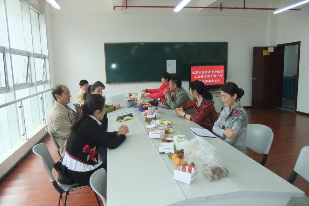教育工会同志与“职工书屋”管理人员就如何活跃“职工书屋”活动展开讨论