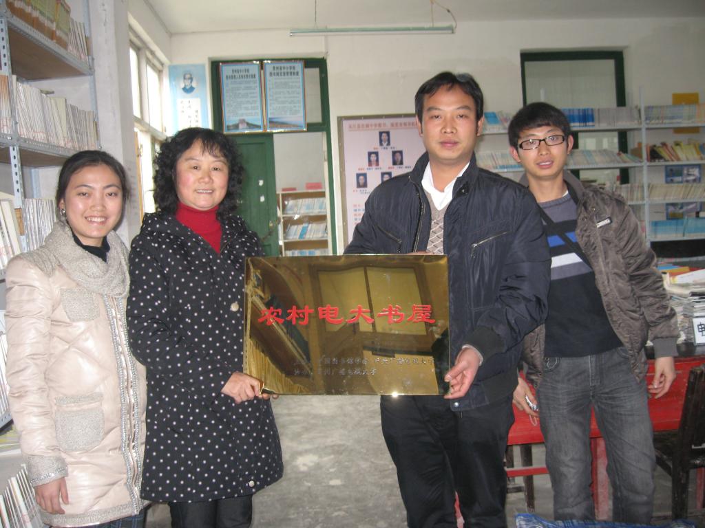 12月28日,贵州广播电视大学图书馆馆长郭云莹、馆员刘莉娜、李光华前往从江县往洞乡送去贵州电大捐赠往洞中学“农村电大书屋”的最后一批图书并举行挂牌仪式。仪式上,往洞中学校长丁帮安表示,一定不会辜负社会各界对往洞乡中学的关怀和殷切期望。往洞中学将发奋图强,加倍努力,培养更多少数民族的孩子更好地建设家乡、回馈社会。仪式结束后,图书馆一行察看了学校图书室的图书,馆长郭云莹与校长丁帮安交换了意见,并表示,以后所赠图书将按照学生的需求订购,使所捐赠的图书真正使学生受益。