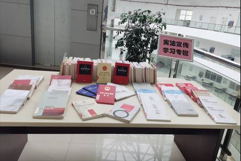 2020年12月4日上午图书馆全体馆员集中学习观看了“12·4”国家宪法日宣传片,充分了解和认识到开展宪法宣传活动的重要意义,馆员们积极响应号召,会后立刻将早已挑选出来的宪法类相关书籍整理规划出“宪法宣传周专架”图书区。在宪法宣传周内,图书馆组织学生集中观看多场普法宣传片,并利用巡库、借阅咨询等工作的间隙给学生宣传普法知识。