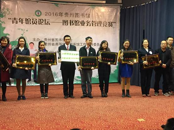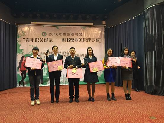 11月3日至5日,由贵州省图书馆学会、贵州省高等院校图书馆工作指导委员会组织举办的2016贵州图书馆“青年馆员论坛——图书馆业务管理竞赛”在贵州省图书馆举行,全省高校图书馆和公共图书馆共28支队伍同场竞技,我校图书馆参赛队在紧张激烈的角逐中,以预赛第9名的成绩闯进半决赛,最终以优良的业务素养在竞赛中荣获三等奖。